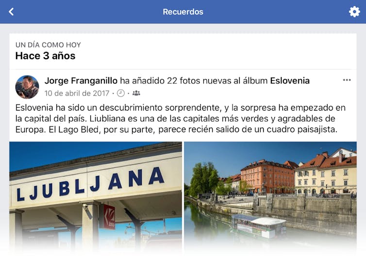 Hay además un placer inherente al hecho de rememorar acontecimientos del pasado. Y los medios sociales juegan aquí un papel clave. Publicar en ellos es un aporte a la identidad personal, al autoconocimiento y a la narración de la individualidad.